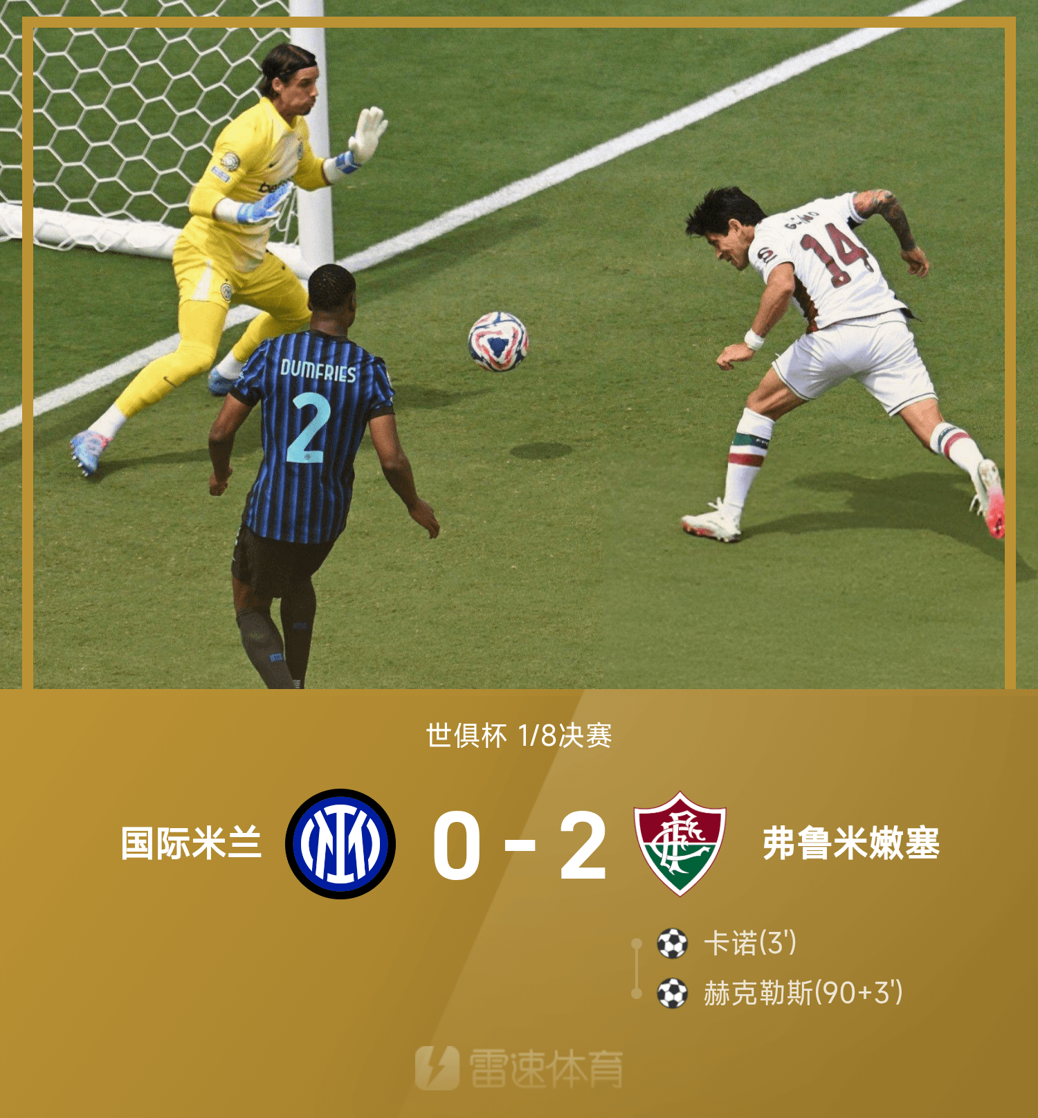 世俱杯战报:卡诺闪击,赫克勒斯锁定胜局,弗鲁米嫩塞2-0国米